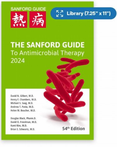 | ISSN Series: | Sanford Guide to Antimicrobial Therapy | | Discipline: | Pharmacology | | Subject Definition: | Antibiotics-Therapeutic Use-Tables | | NLM Class: | QV 16 | | LC Class: | RM262 | | Abstract: | Popular with physicians, pharmacists, physician assistants, nurse practitioners, and other clinicians, The Sanford Guide to Antimicrobial Therapy provides convenient, concise, and reliable information.We have updated treatment recommendations throughout this edition based on recent references and guidelines. Drugs approved by the FDA since the last edition are included in various tables throughout the edition. Also, we have removed many older references that have been superseded or are simply no longer necessary.The book includes a FREE 1-month trial of Sanford Guide All Access, which provides expanded content, interactive tables and tools, and constant updates. |